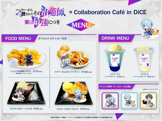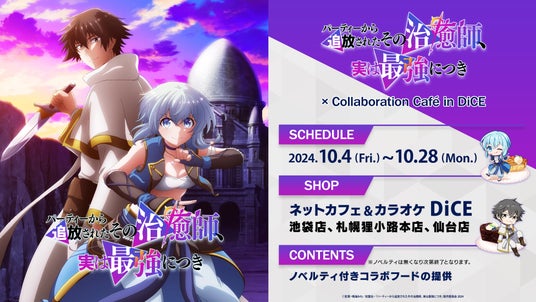 株式会社シティコミュニケーションズ(本社:神奈川県横浜市、代表取締役:三田大明)が運営するインターネットカフェ「DiCE(ダイス)」は、2024年10月4日(金)よりTVアニメ『パーティーから追放されたその治癒師、実は最強につき』とのコラボレーションカフェを開催いたします。
