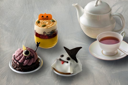 テイクアウトはもちろん、枯山水の日本庭園「閑坐庭(かんざてい)」を望むガーデンラウンジ「坐忘」や、隣接するガーデンキッチン「かるめら」でのイートインも可能です。深まる秋を感じながら、心躍るハロウィンシーズンをお楽しみください。