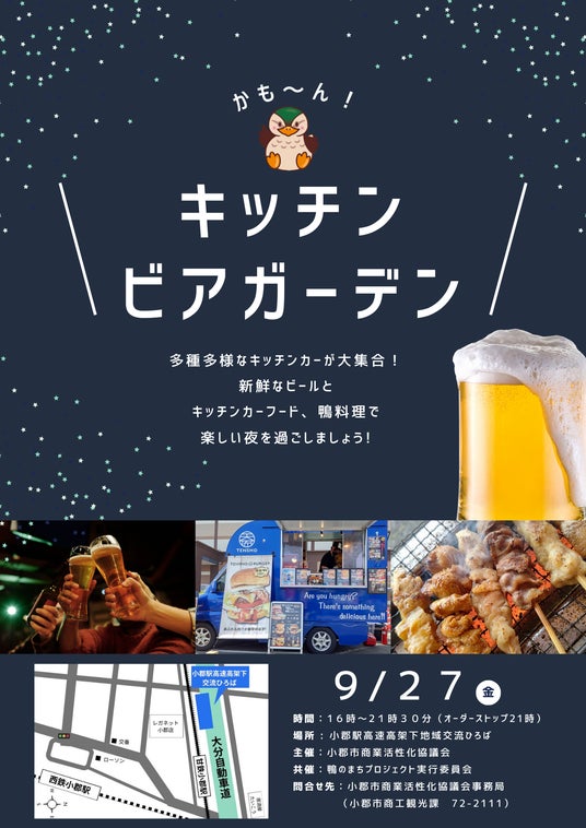 まだまだ暑~いこの季節。キンキンに冷えた生ビールに、種類豊富なキッチンカーフードはいかがですか。ビールと相性ばっちり!市内飲食店の鴨料理も楽しめます。