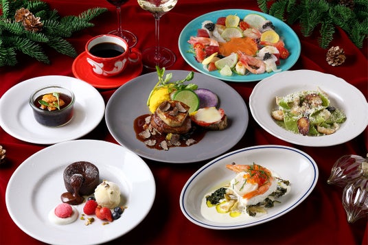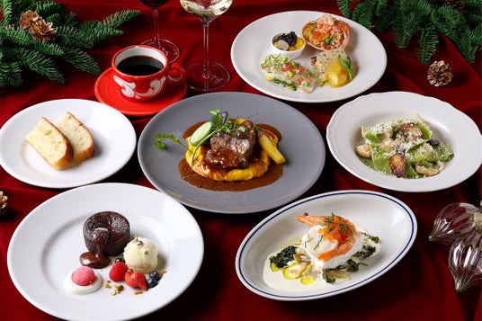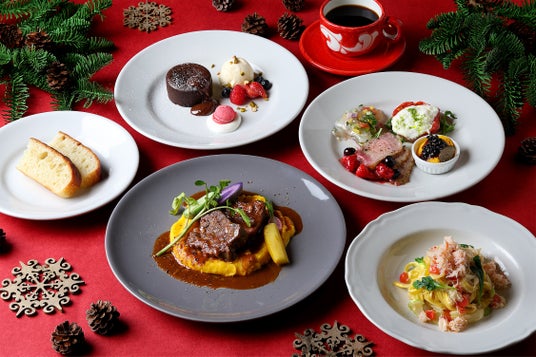 短角和牛フィレ肉とフォアグラの重ね焼きロッシーニ風などが楽しめるクリスマスディナー