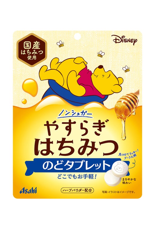 「頑張る自分とのどに癒しをくれるノンシュガー※はちみつタブレット」をコンセプトに、幅広い年齢層の女性やファミリー層に向けて、はちみつ好きのキャラクターとして有名な「プーさん」をパッケージデザインに採用しました。