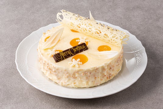 キルシュ酒香るグリオットチェリーのゼリーやアプリコットゼリーをホワイトチョコレートムースで包み込んだ、大人のクリスマスケーキです。