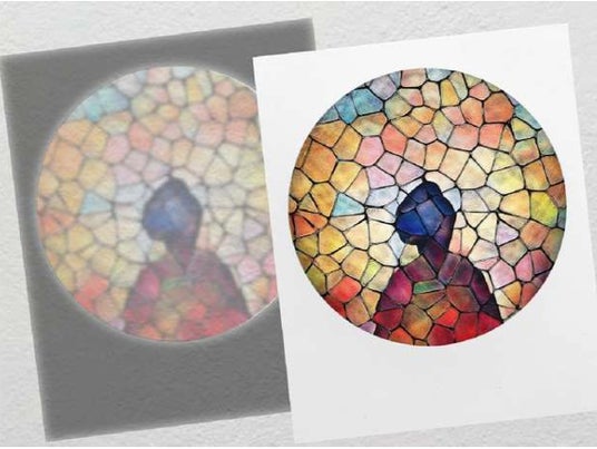 マカオブースの入口正面にあるステンドグラスのLEDスクリーンの前に立つと、シルエットが投影されます。投影された自身のシルエットは写真撮影され、ステンドグラス部分が透き通ったフィルムとして加工されたオリジナルの記念品をお持ち帰りいただけます。イベント期間中は毎日、数量限定で実施します。