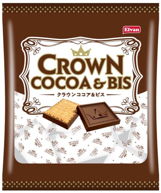 サクサクとしたビスケットとチョコの濃厚な味わいが絶妙にマッチした「クラウンカカオ&ビス」を袋タイプと小箱タイプの2形態で新発売いたします!香ばしく焼き上げたビスケットの上に、王冠を模ったまろやかな味わいの板チョコをトッピング。高級感のある味わいで特別なひと時を過ごすことができます。袋タイプには個包装が約19枚入っており、家族や友人とシェアするのにおすすめです。小箱タイプは6枚入りで、小腹が空いた時のおやつにもぴったり。可愛らしい箱パッケージは、ちょっとした手土産としても喜ばれます。