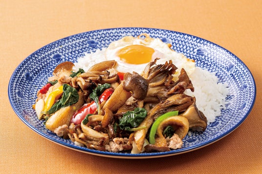 ガパオとカオマンガイで秋の味覚「きのこ」づくし!