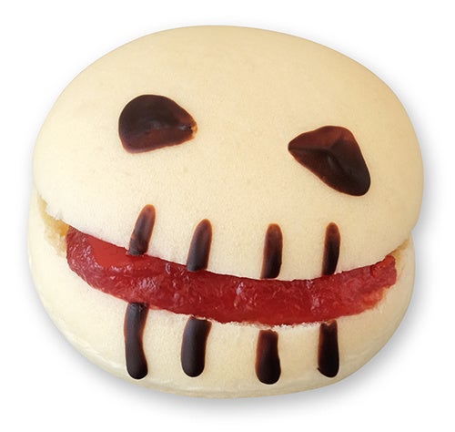 かぶりつくと少しジャムがあふれ出るかも?!ちょっとホラーなハロウィンパン。ふんわりした白パン生地に、甘酸っぱいイチゴジャムをたっぷり挟んだハロウィン限定商品です。