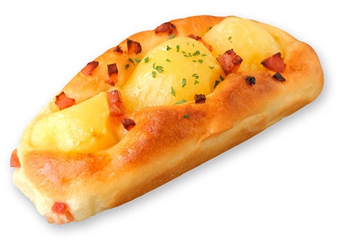 ホクホクじゃがベーコンパン北海道産小麦使用のパン生地に、ホクホクのじゃがいもとベーコンをのせ、バター風味ソースで味付けし焼き上げました。