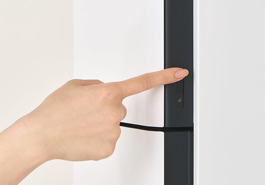 中央のスライドパネルが閉じているときはタッチパネルが作動しない設計のため、お子さまのいたずら等によるお水の誤出水を防止することができます。さらにスライドパネルの側面溝には、パネルの開閉を制御するチャイルドロックを設置しており、必要以上に開閉することがないようにロックをかけることで、出水事故をさらに予防できます。※特許出願中