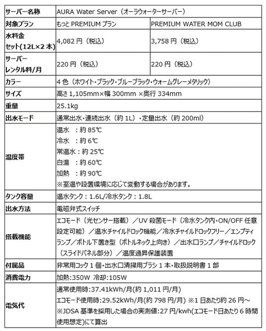 『AURA Water Server』 製品ページ: https://premium-water.net/waterserver/aura/