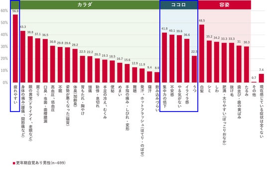 ▼現在感じている症状 【更年期の自覚がある男性のみ】(n=699)