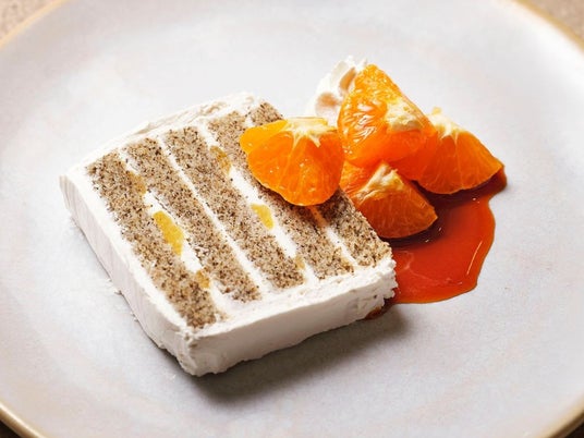 今の季節は、ほろにがカラメルソースに相性のよいジューシーなみかんを合わせました。