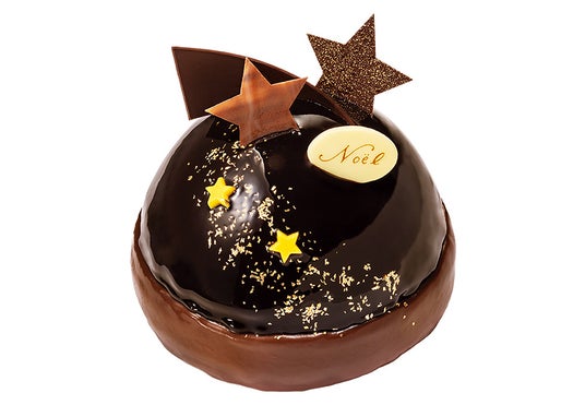聖夜にきらめく流れ星をイメージした、ショコラ尽くしの一品。ビター&ミルクショコラをブレンドした、美味しさあふれるショコラづくしのケーキです。しっとり柔らかなショコラスポンジに、とろける舌触りのショコラクリーム。中から現れるさくさくのパールクラッカンショコラがアクセントです。