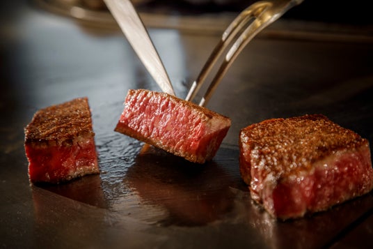 鉄板焼「恵比寿」では、月齢30か月以上の雌で、鉄板焼「恵比寿」のために育て上げた中川畜産の特別な和牛を目の前の鉄板で焼き上げる至福のコースをご用意します。