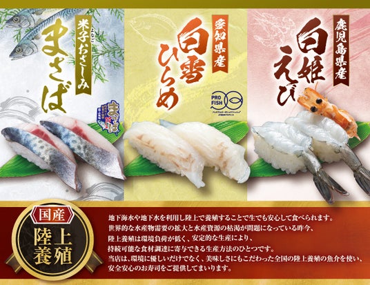 ※陸上養殖魚は「にぎりの徳兵衛」富田店、天王店、扶桑店 、関店、桑名店、今伊勢店、稲沢店 で実施いたしません。