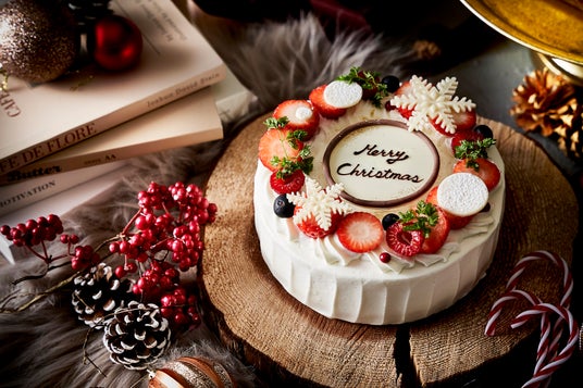 リース状に、いちご、ブルーベリー、ラズベリー、シリアルチョコ、セルフィーユ、雪の結晶型チョコレートを飾ったクリスマスムード溢れる王道ないちごのショートケーキ。きめ細やかでくちどけ滑らかなスポンジとほどよい甘さのクリームが幅広い世代に毎年人気です。ご友人やご家族との思い出深いホリデーシーズンにふさわしいケーキです。
