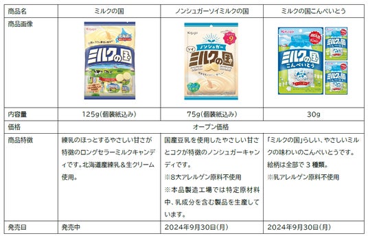 3種類の絵柄がかわいい「ミルクの国こんぺいとう」も2024年9月30日(月)新発売!
