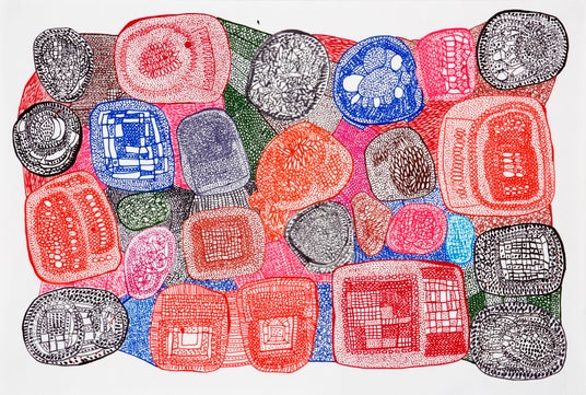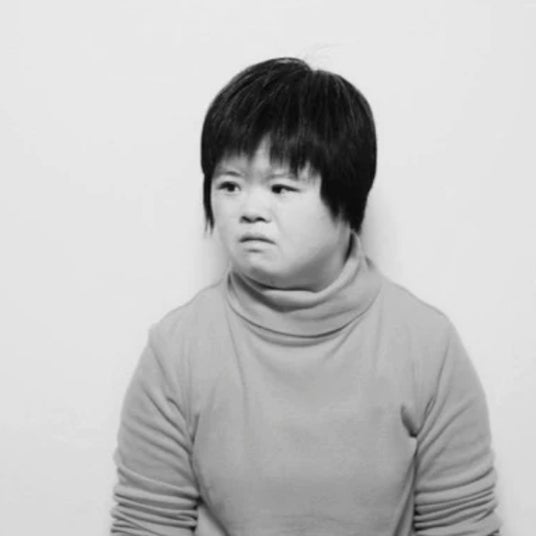 幼い頃から机に向い集中して手指を動かす作業が好きで、モンテッソーリ教室に通っていた。折り紙が得意でホテルでリネンを畳む仕事に就き、余暇として習字やリリアン、編み物をしながら過ごしていた。そんな中、ある日突然ダウン症の方に多い円錐角膜による症状のひとつである急性水腫を発症したが奇跡的に回復し、自ら手持ちの水性ペンで大胆に細やかな線画を描き始めた。彼女は、コツコツとちいさなマルやセルを繋げ、好きなモノや想いを描く。当初はモノクロの作品を描いていたが、次第にたくさんの色を持ち、形を変え、欠片は増殖していく。そして、徐々に現在の作風が確立されていった。