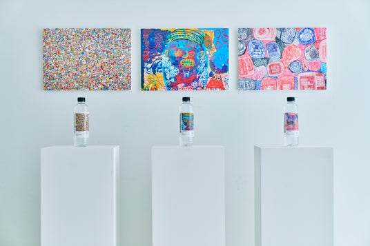 「トゥモロー・ウォーター」の発売を記念し、『トゥモロー・ウォーター展 ― 自動販売機で買うアート』を開催いたします。発売前のトゥモロー・ウォーターと、そのボトルに描かれたアート作品3点を展示いたします。〈トゥモロー・ウォーター〉の世界をご堪能ください。