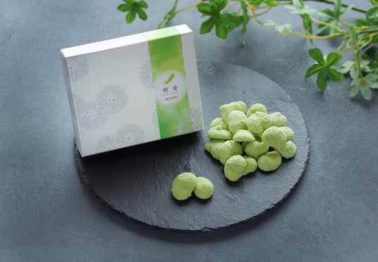枝豆味のメレンゲに、梅昆布茶と和山椒を合わせた、軽いサクサクとした食感と爽やかな味わいが特長です。