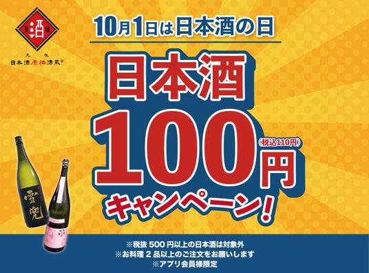 【40種全品¥100(税込¥110)】10月1日『日本酒の日』キャンペーンを開催!