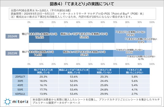「てまえどり」の実践は2023年から1.2Pt増の69.6%!若い年代ほど常に実践している傾向あり