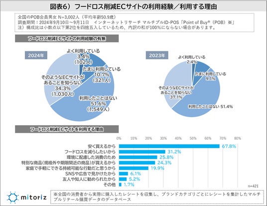 ・「フードロス削減EC」は利用&認知ともに2023年から上昇!利用する理由は「安いから」が70%に迫る