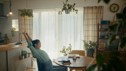 自宅での仕事に疲れてきた飯豊さん。PCを閉じると、3人の小さな星人たちがひょっこり顔を出した。「オイシイ食事、アキラメナイデ~!」と三ツ星ビームを出すと、おいしそうな食事が広がり、心躍る飯豊さん。レンジから取り出したハンバーグを頬張り思わず「うんまっ!」と声が漏れます。おいしそうに食事を楽しむ飯豊さんの横で三ツ星星人たちもにっこにこ。三ツ星星人と三ツ星ファームの食事で癒される飯豊さんの表情が見どころです。
