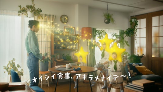 新TVCMには、ブランドキャラクターを務める女優・モデルの飯豊まりえさんが、仕事で疲れた時に突然現れた小さな「三ツ星星人」たちによって、幸せな食事の時間を過ごす姿が表現されています。飯豊さんの幸せそうな表情と、三ツ星星人のコミカルな動きに、ぜひご注目ください。