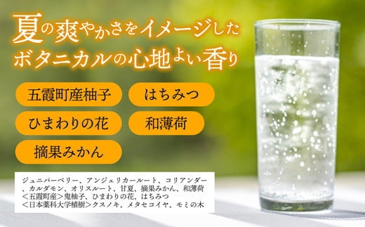 夏の爽やかさをイメージし、五霞町産の柚子やはちみつ、ひまわりの花を贅沢に使用し、さらに摘果みかんなどの柑橘系ボタニカルが心地よい香りを引き立てます。