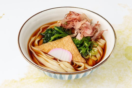 きしめんは、名古屋を代表する伝統的なうどんの一種です。通常のうどんに比べて、麺が平たくて幅広いのが特徴。また「驛釜きしめん」では創業明治二十三年の老舗「吉田麺業」が作る、保存料などの添加物は使わず、厳選した国産の小麦粉と塩のみで作った本格きしめんを使用。もっちりとした食感とやわらかいのど越しが特徴の麺を、茹でたてで提供いたします。