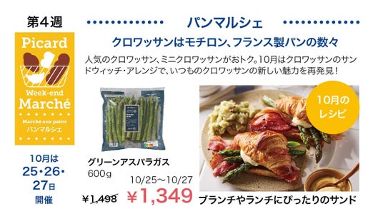 ピカールでは、マルシェ(市場)に買い物に行ったときのワクワク感、選んで、使って、味わえる楽しさを体験できるような新しい企画「ピカールウィークエンドマルシェ」を10月4日(金)から毎月4回、第1週から第4週の週末(金曜日、土曜日、日曜日)に開催します。