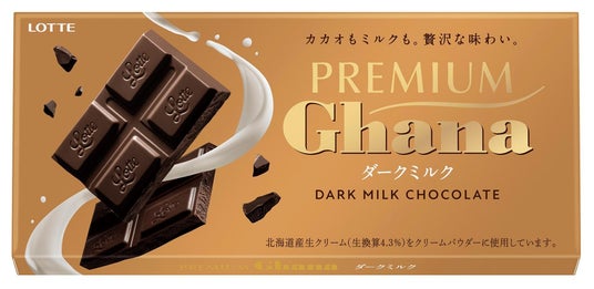 カカオもミルクも、どちらも贅沢に味わえるプレミアムな板チョコレート、「プレミアムガーナ ダークミルク」も好評発売中です!