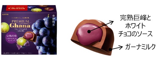 ◆完熟巨峰(※3)のみずみずしさが溢れ出すとろ~りとした ショコラソースを、濃厚なガーナミルクで包み込みました。