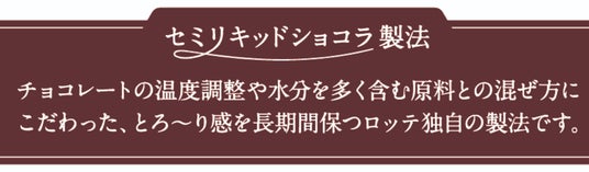 ※2チョコレートの温度調整や水分を多く含む原料との混ぜ方にこだわった、とろ~り感を長期間保つロッテ独自の製法です。