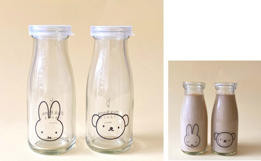 Dick Bruna TABLEの新しいメニュー、「コーヒー牛乳」を提供する際に使用されているミルクボトル。ふたに貼れるシール付きです。お気に入りのドリンクを入れて、ご自宅でDick Bruna TABLEが楽しめます。ドリンクを飲むボトルとして使用するほか、中にお菓子を詰めてプレゼントするのにもぴったりです。