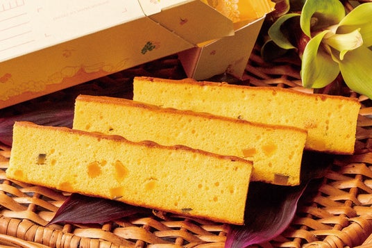 かぼちゃのパウンド生地の中に甘く煮たかぼちゃの角切りが入っています。かぼちゃのやさしい甘みとバターいっぱいのしっとりとしたパウンドバトンです。かぼちゃパウンドバトンと人気のショコラパウンドのバトンやフロランタンを詰め合わせた3本セットが季節限定で登場。