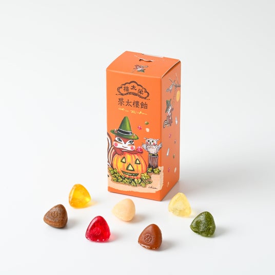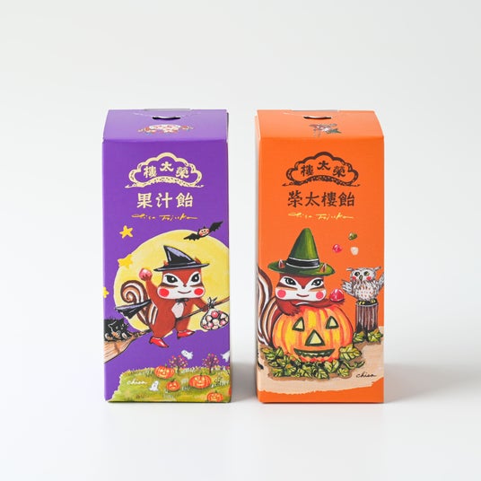 ハロウィンの装いをしたリスや動物たちが可愛らしいパッケージは藤岡ちささん書下ろしイラスト。