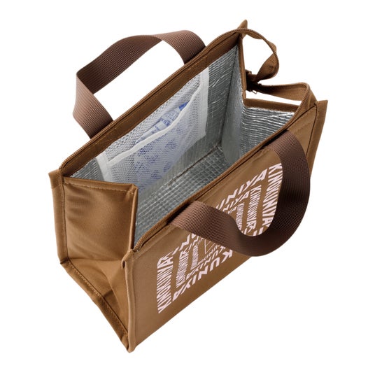 商品に保冷剤が直接触れて冷凍焼けしないようにメッシュポケットをつけました。保冷剤を使用することで食品の鮮度を効果的に保ちます。マチがあるので大きなお弁当箱や飲み物を一緒に入れて持ち運ぶのはもちろん、ちょっとした冷蔵商品を入れて持ち歩いたりと大活躍!
