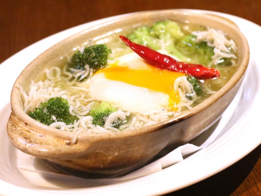 ■しらす・ブロッコリーと温玉のアヒージョ 790円(税込)