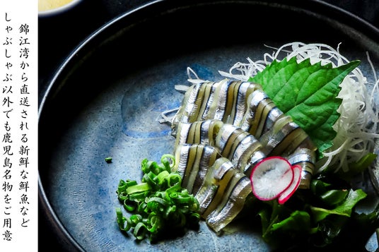 錦江湾から直送される新鮮な鮮魚を使用した刺身盛り合わせなどしゃぶしゃぶ以外にも鹿児島の厳選食材をご用意しております。