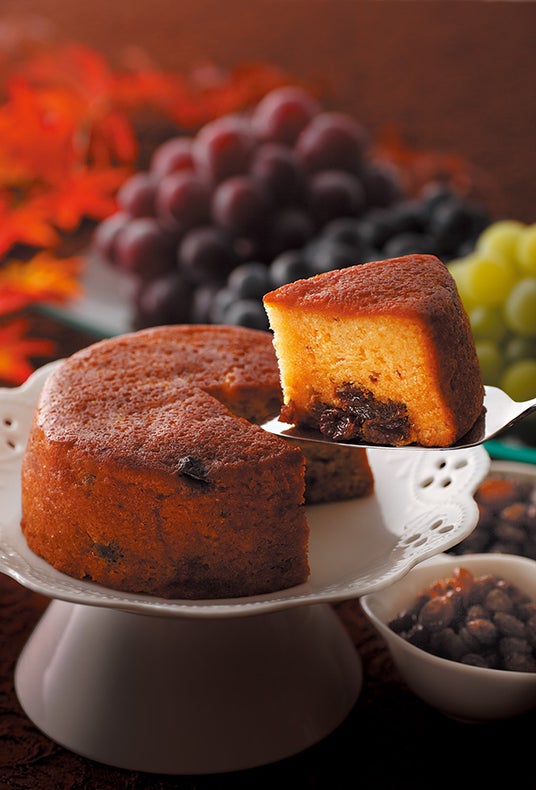 パティシエが十数年もの間、試行錯誤を繰り返しやっとここに、こだわりの「パウンドケーキ」ができあがりました。こだわったのは「葡萄(ぶどう)」。じっくりと3カ月もの時間をかけて仕込んだ黒レーズンとさっぱりフレッシュ感のある白レーズンを組み合わせました。