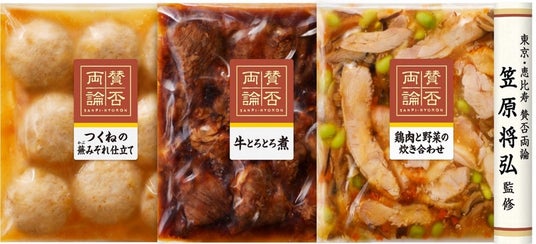 1本500gとボリュームも充分です。また、5種の和洋惣菜セットも新発売します。牛肉と蓮根の甘辛煮や豚角煮、ビーフシチューなどをセットした、常温保存・レンジ調理が可能で簡便かつ小分けタイプのギフトです。24年中元期に発売した大阪発祥の人気おうどん店「つるとんたん」とのコラボギフトは、今歳暮、かけつゆのおうどんとお惣菜をセットして発売します。
