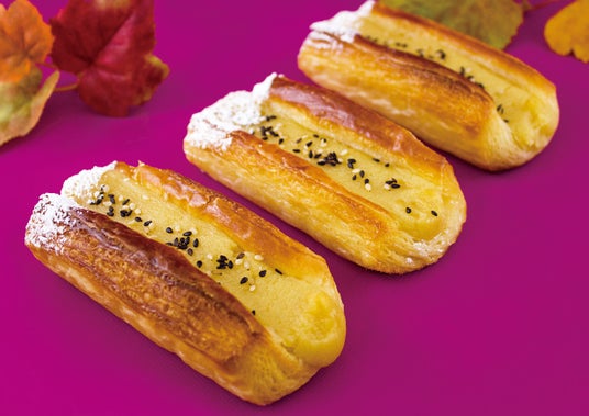 紅はるかを使用したさつまいもバターフィリングをデニッシュ生地に絞り、焼き上げました。バターのコクとさつまいもの濃厚な甘みが口の中でとろけます。
