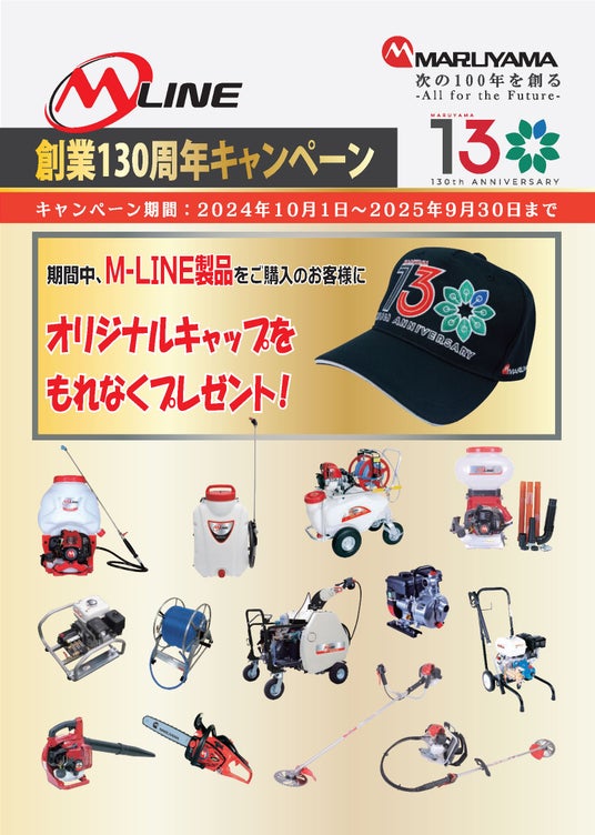 1. 背負動噴をはじめとしたM-LINEシリーズをご購入のお客様全員に、130周年オリジナルキャップをプレゼント