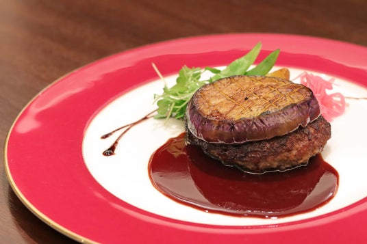 - 上州牛とハーブ豚のハンバーグ 福井県鯖江市産吉川ナスのステーキ添え…3,000円