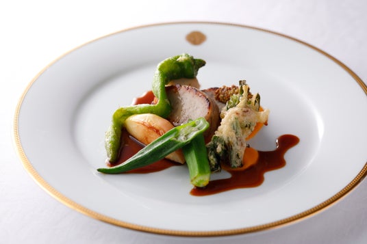 月替わりの『シェフのおすすめコース』の前菜では『高知県四万十産完全米わら焼き鰹“龍馬タタキ”と葉ニンニクのぬた添え』、肉料理では『高知県産“四万十ポーク”のロース肉コンフィ “新時代”かぼちゃのピュレ添え シードルソース』をご用意しました。四万十町の食材の魅力を『シェフのおすすめコース』でもご堪能いただけます。