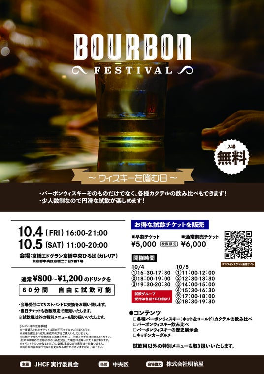 株式会社明治屋(東京都中央区京橋)は2024年10月4日(金)、5日(土)の二日間、会場協力として参加するイベント「バーボンフェスティバル ~ウイスキーを嗜む日~」(主催:JHCF実行委員会、後援:東京都中央区)の開催を発表しました。
