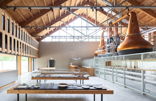 地元産カラマツをつかった温かみあるニセコ蒸溜所の内観