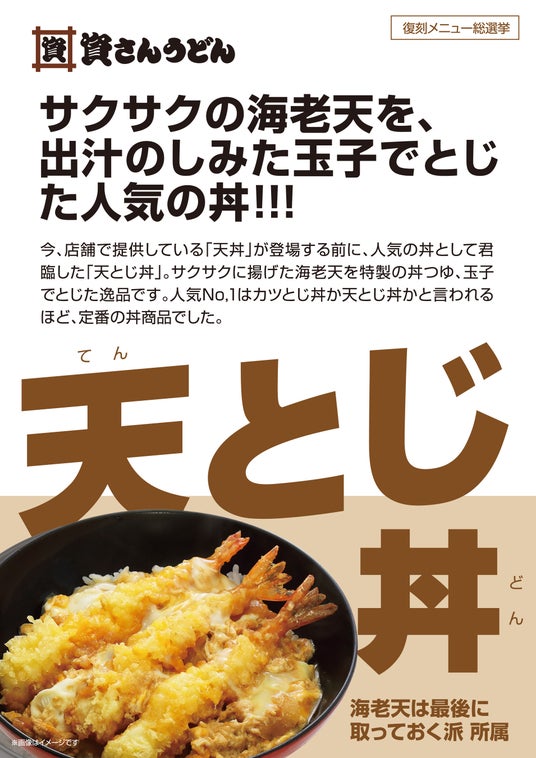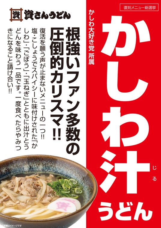 長年、資さんうどんをご利用頂いているファンの皆さまより、過去にご提供していた「メニュー」を復活してほしい!とのお声を頂くことも多くなりました。