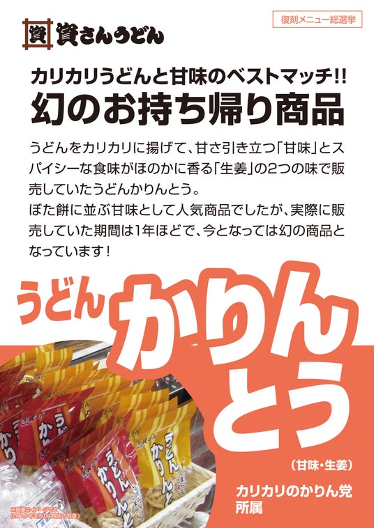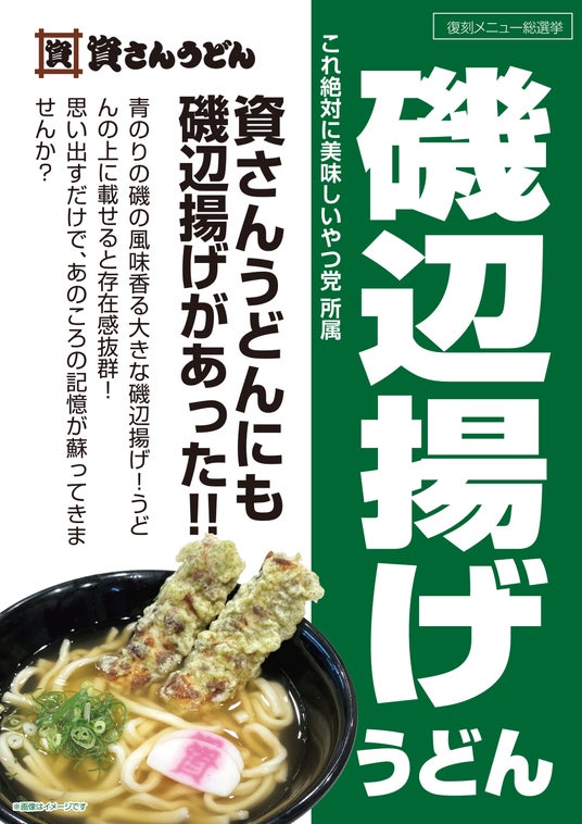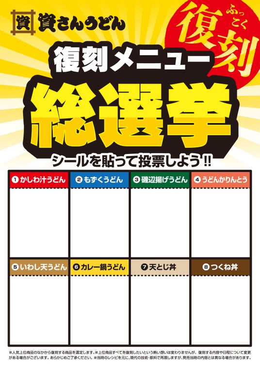 そこで、皆さまのお声を反映させて頂くべく、資さんうどん史上初となる「資さんうどん復刻メニュー総選挙」を開催する運びとなりました。